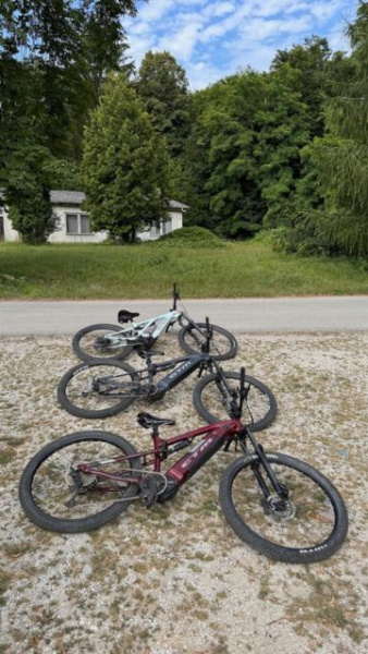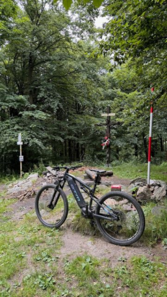 Cesta pokračovala cez Žiare na rázcestie Pod Válovom, kde sme sa dostali na lesnú asfaltku vedúcu na Chatu na Inovci. Túto časť trasy sme vyšliapali bez pomoci elektromotora. V chate sme sa posilnili tradičnou kofolou a pripravili sme sa na náročnejšiu časť tejto trasy - stúpanie na Inovec, ktorý sa vypína až do výšky 1042 metrov nad morom. Na tomto úseku som naozaj ocenil možnosť testovať celoodpružený e-bajk CTM AREON XPERT od CTM Nitra, ktorý mi výrazne uľahčil stúpanie.