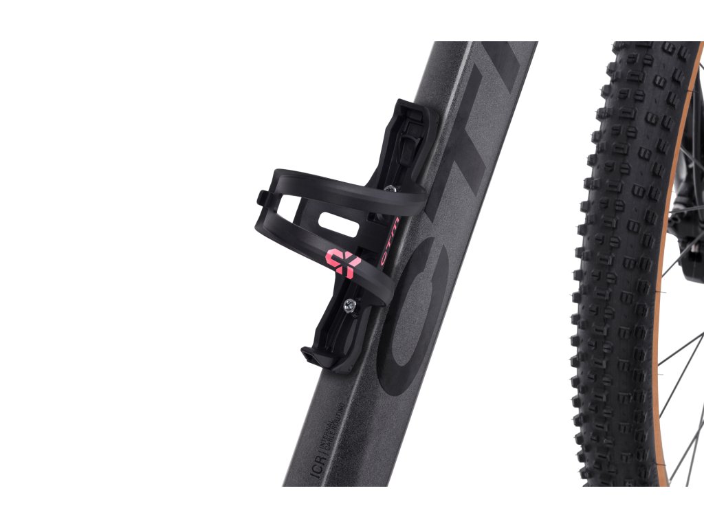 Plastový držák na lahve s bočním vkládáním; Oboustranný design - lze otočit na pravou nebo levou stranu; Spodní zarážku lze jednoduše vyklopit z držáku podle toho, na kterou stranu je držák otočen; Ideální řešení pro rámy s menším vnitřním prostorem pro láhev; Integrovaná upevňovací gumička, kterou lze v případě potřeby použít k zajištění láhve v náročném terénu; Balení obsahuje šrouby do rámu; Hmotnost: 48g; Barva: matná černá/rúžová