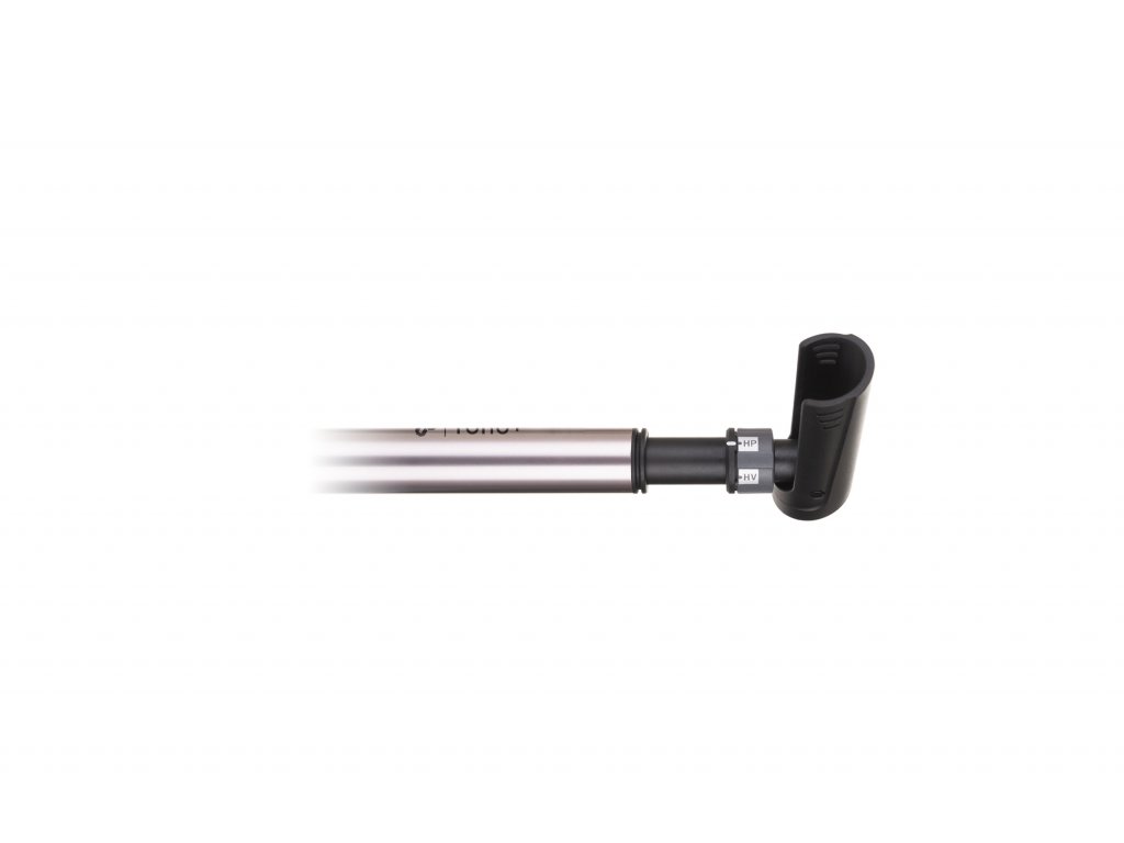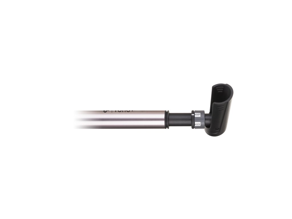 Duralová mini hustilka s HV/HP módom; Max. tlak: 80/120PSI; Dĺžka 25 cm; ULH univerzálna hlava hustilky - prispôsobí sa ventilu bez nutnosti otáčania či prepínania vnútorného ventilu; Prepínanie HV/HP módu (HV - vysoký objem/HP - vysoký tlak) otočením prstenca podľa druhu hustenia; Typ ventilu: auto/presta; Sklopná T-rúčka pre pohodlnejšiu a jednoduchšiu manipuláciu; Súčasťou je držiak hustilky; Farba: oceľová šedá"