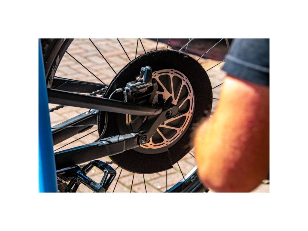 Konečne je tu riešenie na ochranu vašich kotúčových bŕzd počas údržby alebo tranzitu! Náš patentovaný dizajn robí život jednoduchým, je rýchly a ľahko sa používa a pomáha zaistiť, že na kotúčových brzdách nebudete mať mastnotu z udržby vášho bicykla.