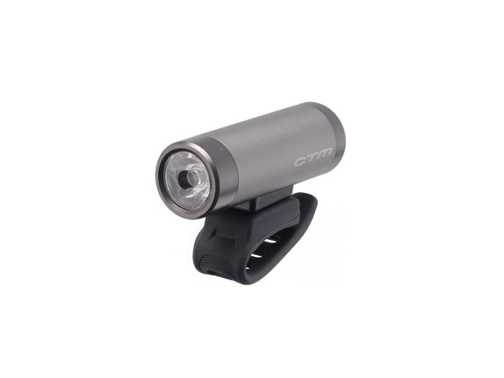 Predné svetlo s bielou LED diódou a možnosťou dobíjania cez USB; Svietivosť: 400 lumenov