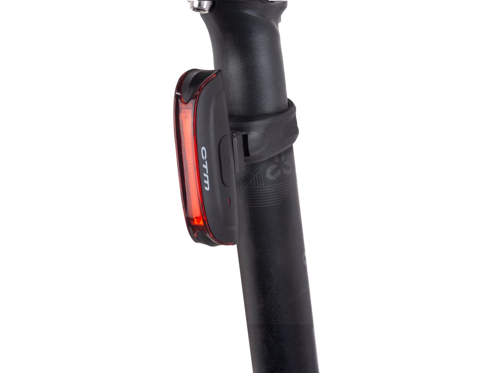Zadné osvetlenie z 20 vysokosvietivých plošných LED žiaroviek a možnosťou dobíjania cez USB; Po stranách prídavné svetlo pre vyššiu viditeľnost; Funkcie: svetlo: 100% - 50% - 25% - blikanie: pomalé/ 25% - pomalé/ 100% - rýchle/ 50%; Vodeodolné konštrukcia; Nabíjacia batéria LiPo 3.7V 500 mAh s dobou nabíjania 2 hodiny; Indikátor stavu batérie; Uchytenie na sedlovku pomocou gumového krúžku; Farba: čierna"