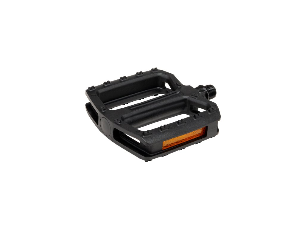 Plastové pedále vyrobené z kvalitného propylénu s reflexnými odrazkami pre zvýšenú bezpečnosť; Jednoduchá, tenká a ľahká konštrukcia platformy dobre drží nohu pri pedálovaní; Materiál osky: 7mm pevná bórová oceľ; Oska po celej dĺžke pedála; Ložiská: EPB - polymérové, ktoré zabezpečujú veľmi hladký chod pedálu; Váha: 280,5g; Rozmer: 110,5x100,5mm; Farba: čierna