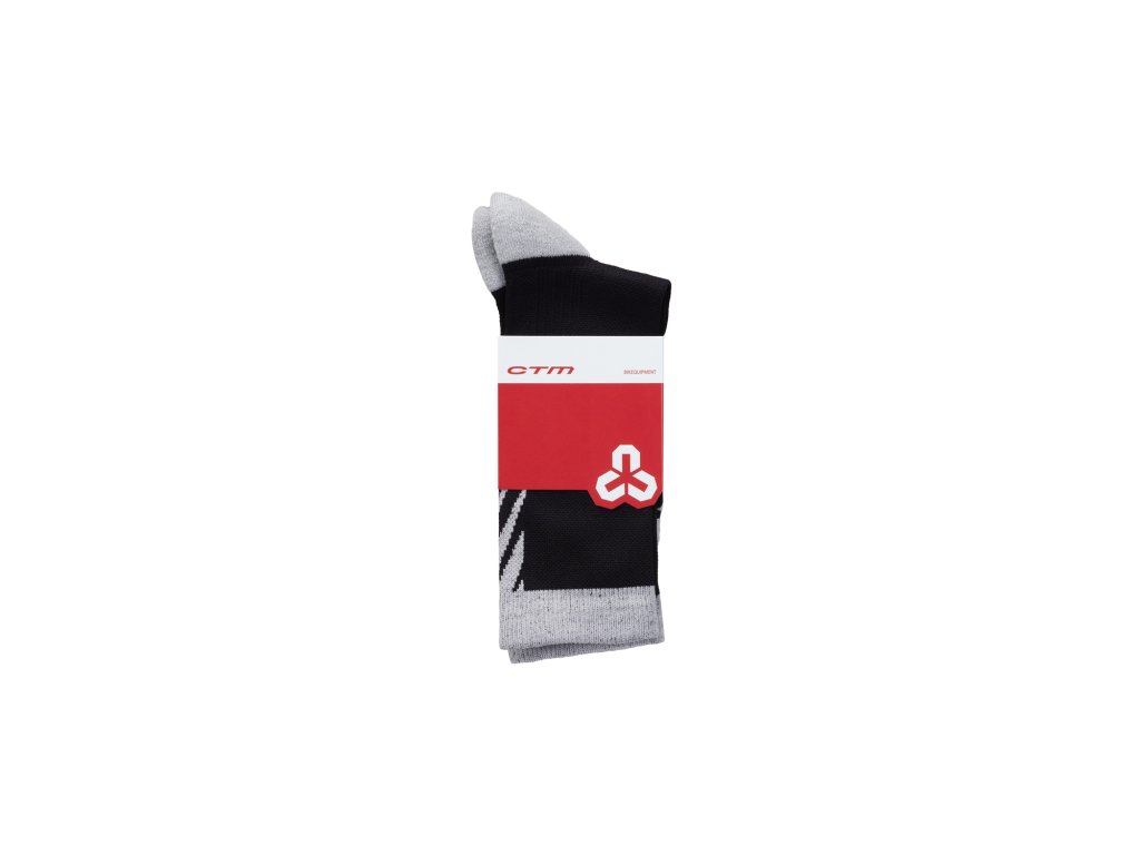 Technické ponožky z polyamidu; Tenké a priedušné so semi-compresným strihom; Zosilnené v oblasti päty a špičky; Tlakové zóny v oblasti nártu a achilovky, ktoré podporujú prúdenie krvi; Výška lýtka 18''; Veľkosť: 38-42; Materiál: Polyamid 93%, Bavlna 7%; Farba: čierna-šedá
