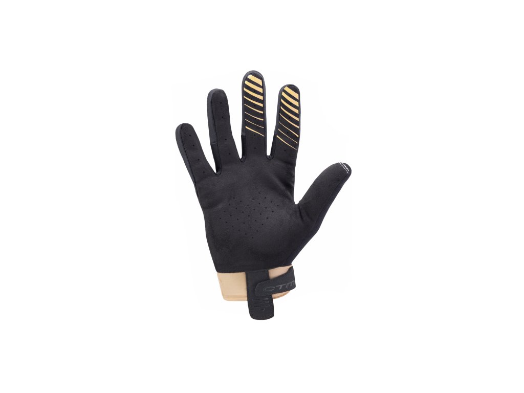 Technické dlhoprsté rukavice s anatomickým strihom pre dokonalý cit; Vyrobené z kvalitných funkčných a rýchloschnúcich materiálov; Horná časť a dlaň sú z jedného kusu materiálu, čo zlepšuje celkový pocit pri nosení bez otláčania; V časti medzi ukazovákom a palcom je dlaňová časť pretiahnutá tak, aby bol dosiahnutý perfektný úchop; Priedušná a ľahká vrchná časť s mikrovláknom na palci na utieranie potu; Materiál na dlaňovej časti od AX Suede zaručí odolnosť, pružnosť a zároveň je príjemný na dotyk; Zapínanie na suchý zips s bezšvovým neoprénom drží rukavicu pevne na ruke; Silikónový vzor na dvoch prstoch pre lepší grip pri brzden; Na palci všité vodivé vlákna pre jednoduché ovládanie dotykových displejov; Veľkosť: S; Farba: púštna