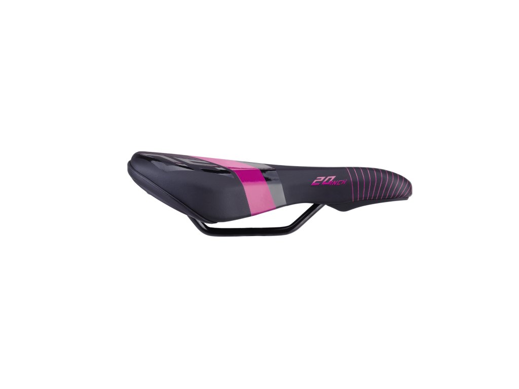 Pohodlné detské MTB sedlo, CrMo lyžiny; Určené pre 16'' a 20'' bicykle; Rozmer: 225x135 mm; Váha: 320g; Farba: čierna/bordová"