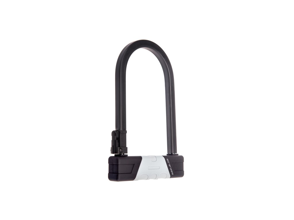 Pevný zámok v tvare „U''; Pogumovaná povrchová úprava proti poškriabaniu; Posuvný kryt na zámku proti nečistotám; Balenie obsahuje 2 kľúče a držiak na bicykel; Rozmer: 170x240 mm; Farba: čierna"