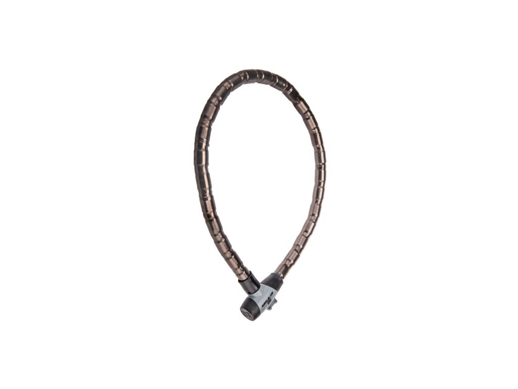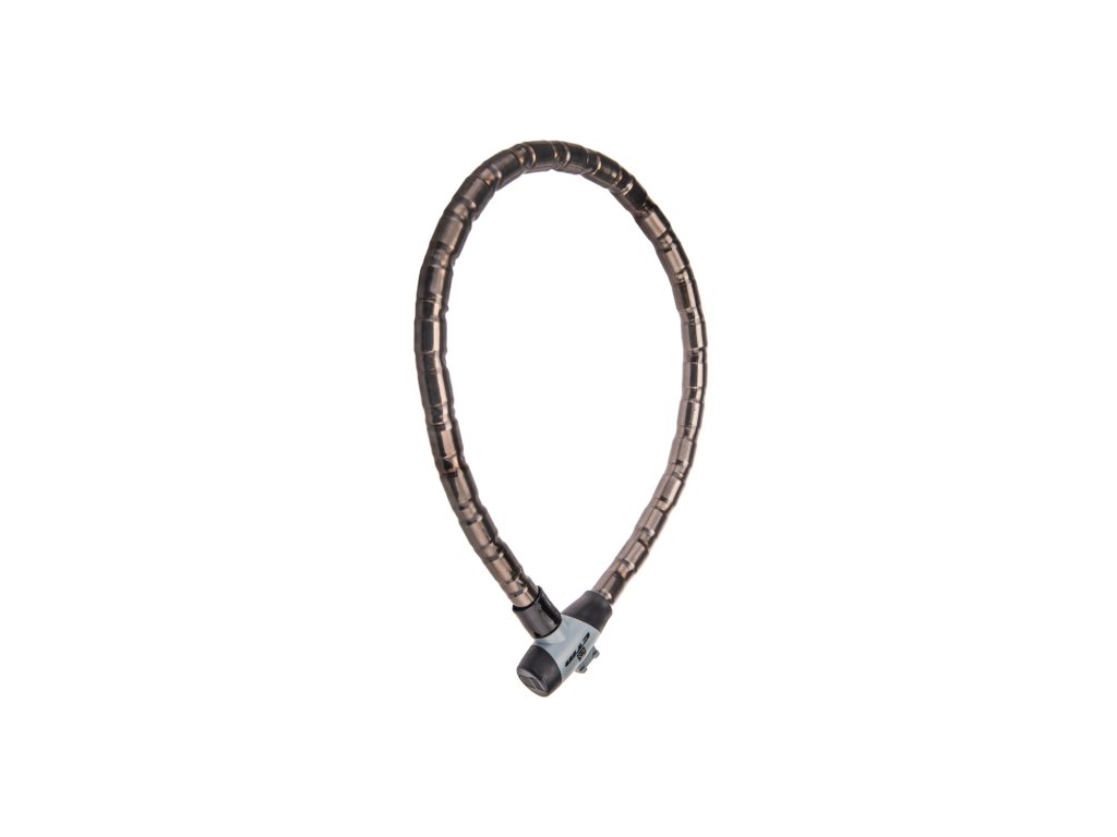 Robustný článkový zámok; Tmavý plastový poťah článkov pre dlhšiu životnosť; Posuvný kryt na zámku proti nečistotám; Balenie obsahuje 2 kľúče a držiak na bicykel; Rozmer: 22x1000 mm; Farba: čierna/šedá"