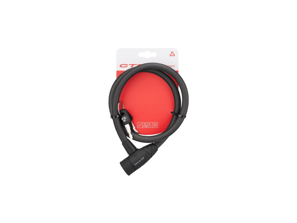 Slučkový kvalitný zámok na kľúč; Pogumovaná povrchová úprava hlavy a návleku; Balenie obsahuje 2 kľúče; Extra odolné prevedenie; Rozmer: 10x650 mm; Farba: matná čierna