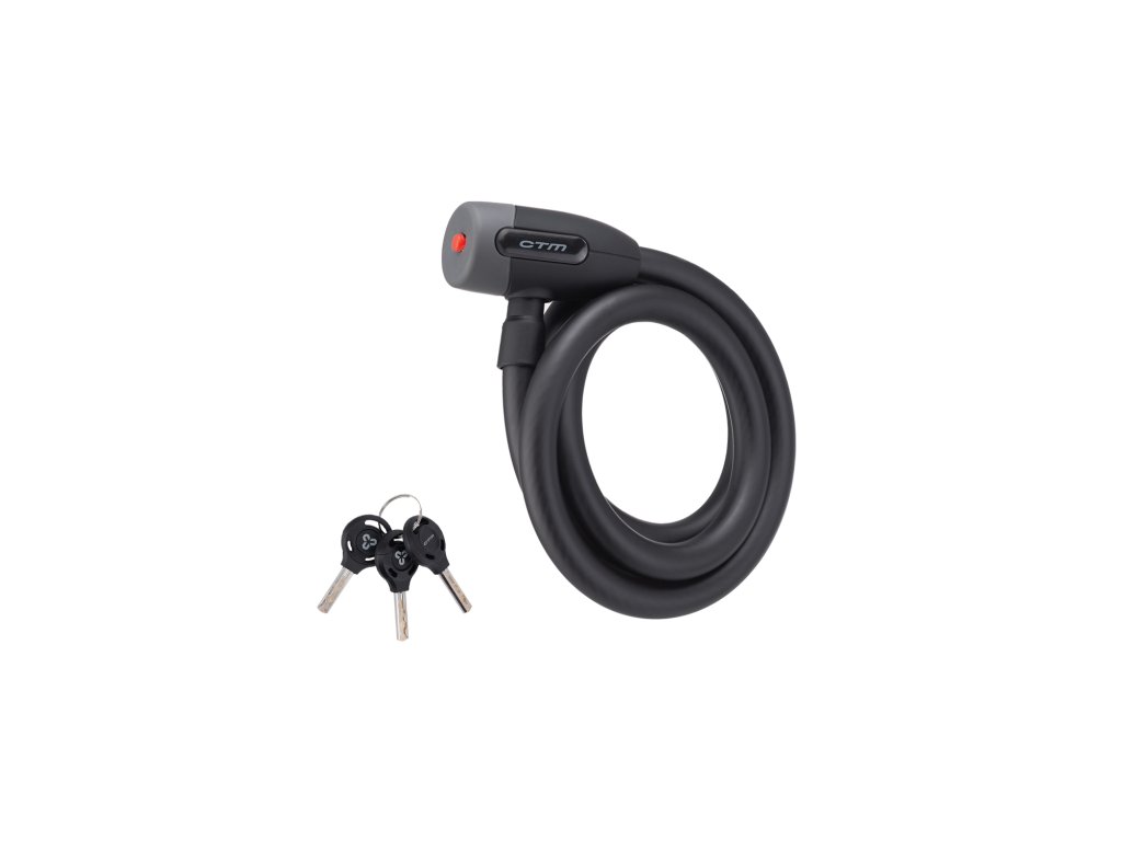 Slučkový kvalitný zámok na kľúče; Pogumovaná povrchová úprava hlavy a návleku; Balenie obsahuje 3 kľúče; Extra odolné prevedenie; Rozmer: 15x1500 mm; Farba: matná čierna/šedá"